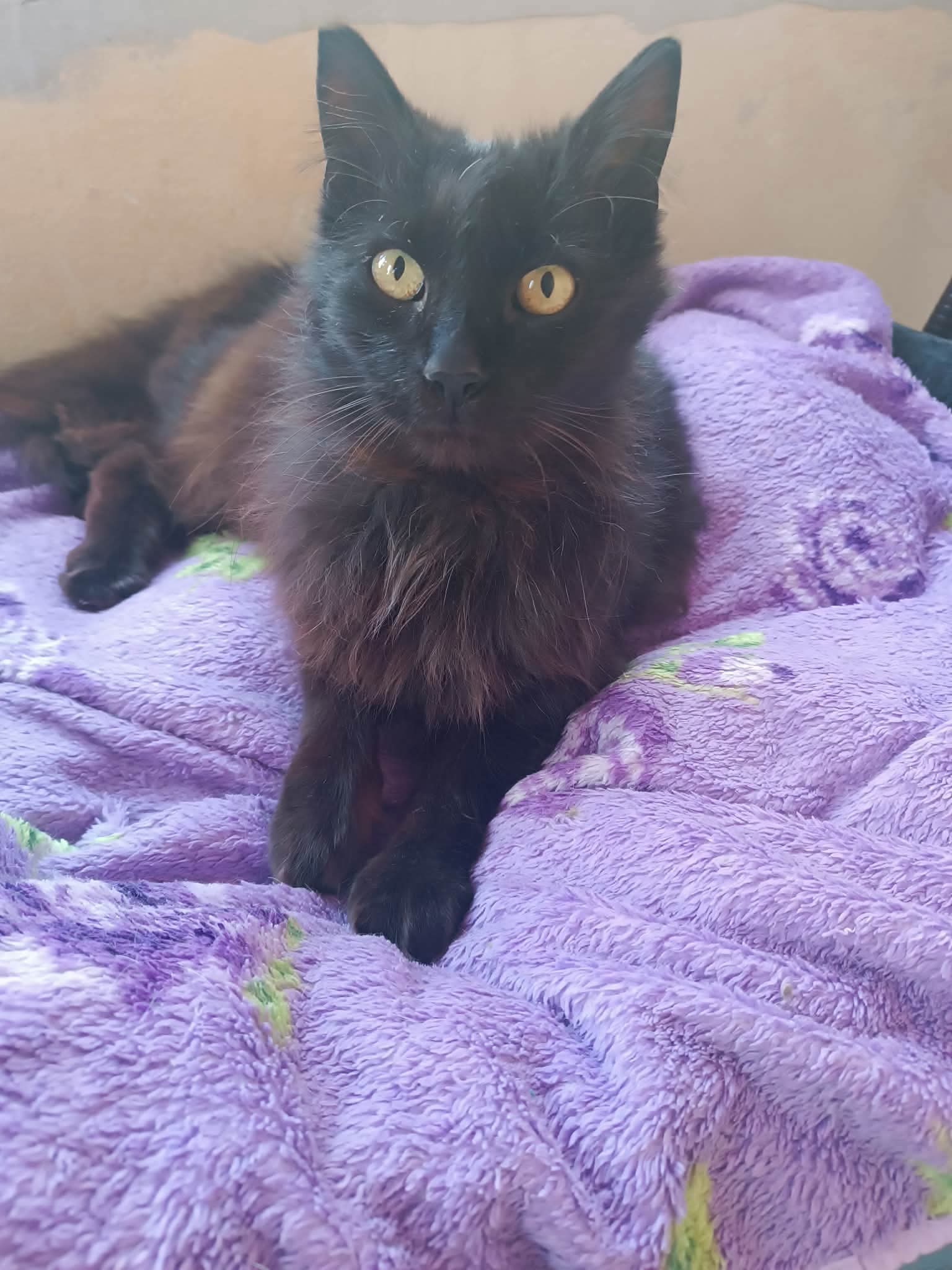 Unsere ELMIRA wurde von einer Frau auf der Straße versorgt. Sie hatte dort sogar ein kleines Häuschen. Jedoch wurde dieses Häuschen von Menschen zerstört und in dem Gebiet wurden mehrere vergiftete Katzen gefunden. So bat die Frau unsere Kollegin um Unterstützung. Sie nahm ELMIRA bei sich auf. Seitdem ist sie bei ihr in Sicherheit.